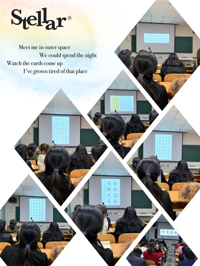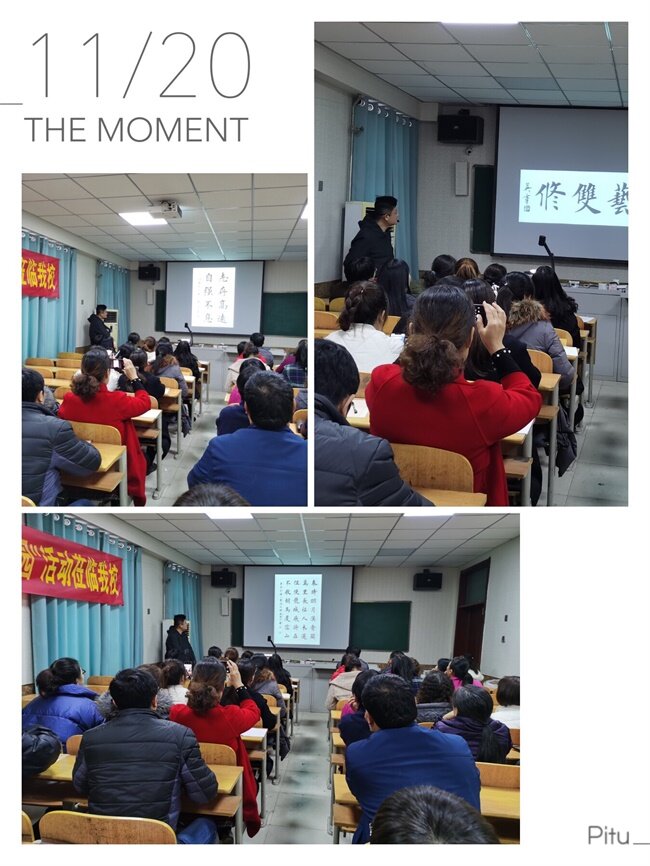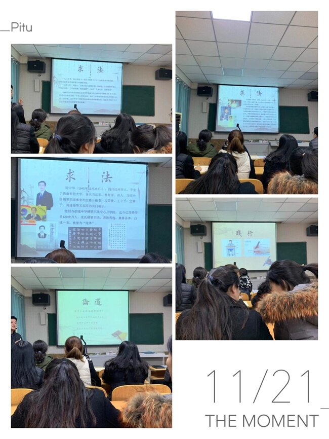 在本期也是第一期的硬笔书法开展中,武老师首先给教师们讲述了硬笔书法的发展历程,让教师们对硬笔书法的发展史有了深入的了解;紧接着武老师介绍了在书法界影响力大的两位书法家——庞中华和田英章,使我们老师知道一手好字的练成是日积月累的沉淀;接下来武老师展示了田英章的书法作品,让我们教师一起领略了书法的魅力;最后武老师给我们教师从哲理中体会书法,书法也蕴藏着人生哲理!