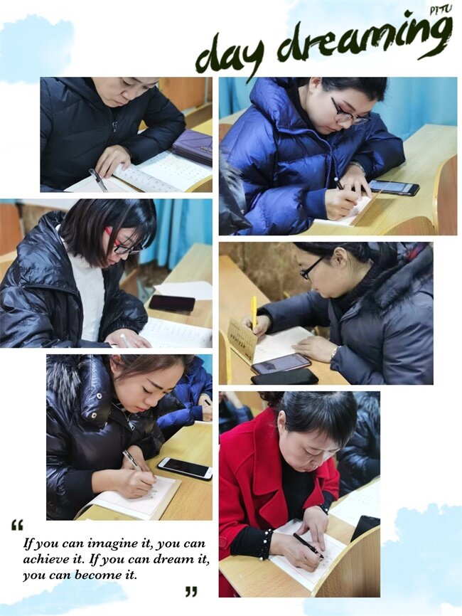 梦圆学校教师硬笔书法第一期就这样如火如荼地开展开了,整个活动过程中教师们个个兴趣高涨,收获颇多。活动虽结束了,但学习还未结束,老师们个个意犹未尽,会后还在相互切磋。