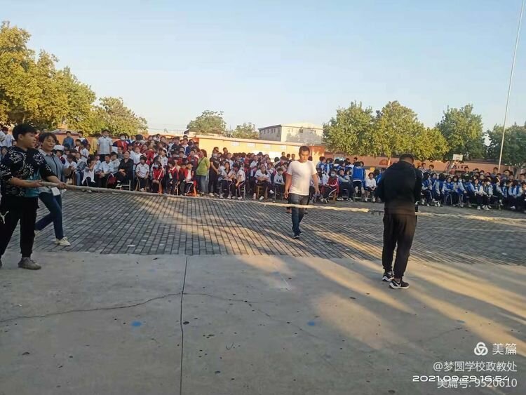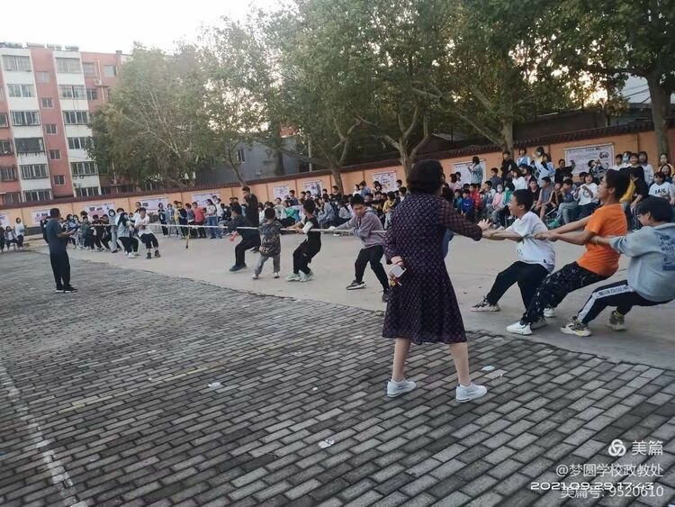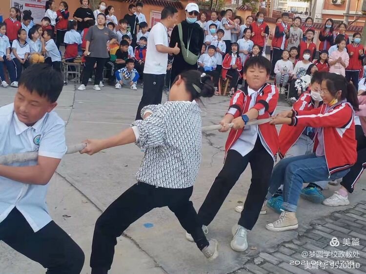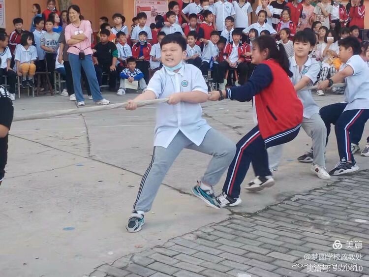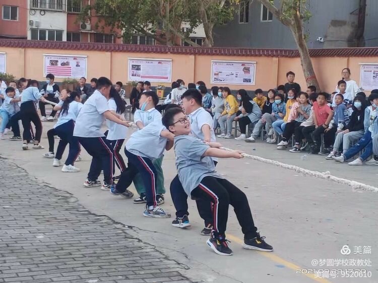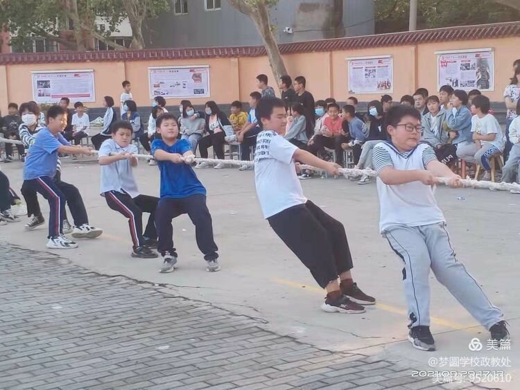 为了丰富学生的课余生活,锻炼学生身体,增强学生的集体观念,培养学生的德育素质。梦圆学校政教处于2021年9月29日和30日下午,利用第三节课举行了校园班级友谊拔河比赛。在学校校领导的大力支持下,在各班主任和政教处人员及所有参与活动教师的辛苦合作下,在各班参赛选手踊跃参加,奋力拼搏的高涨气氛下,比赛活动圆满结束,活动取得良好效果!